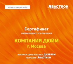В 1991 году компания Бастион начала свое существование, за годы успешной работы зарекомендовала себя как производитель качественного, надежного и долговечного электрооборудования. Более 300 серийно выпускаемых изделий, собственное конструкторское бюро, 68 патентов, более 1400 сертификатов, пожизненная гарантия на ряд приборов, полный цикл разработки, производственные и складские помещения, расположившиеся более чем на 4000 кв.м - все это делает Бастион и его торговые марки (Скат, Бастион, Альбатрос, Teplocom, AquaBast и др.) известными профессионалам рынка безопасности.